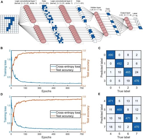A team led by Jianji Dong and Hailong Zhou at Huazhong University of Science and Technology has proposed the concept of an optical logic convolutional neural network (OLCNN). The authors demonstrate a 1×3 optical logic convolution operator (OLCO) for pattern generation and verify its high-speed computing capability of 20 Gbit/s. Subsequently, they implement a 2×2 OLCO to perform three types of image edge detection. By further scaling up, they construct a 3×3 OLCO for use in OLCNN and achieve four-class classification on the MNIST dataset, with an average test accuracy of 95.1%. By integrating optical logic devices with neural networks, this work pioneers a logic-driven paradigm for high-speed, energy-efficient optical hardware tailored for artificial intelligence.