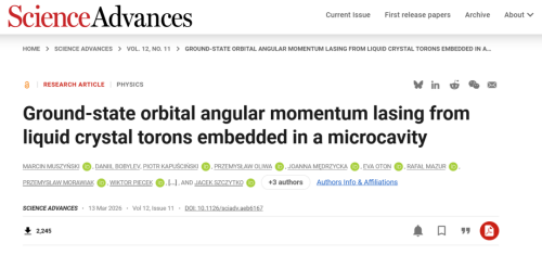 The research findings were published in Science Advances on March 13, 2026, under the title “Ground-state orbital angular momentum lasing from liquid crystal torons embedded in a microcavity.”